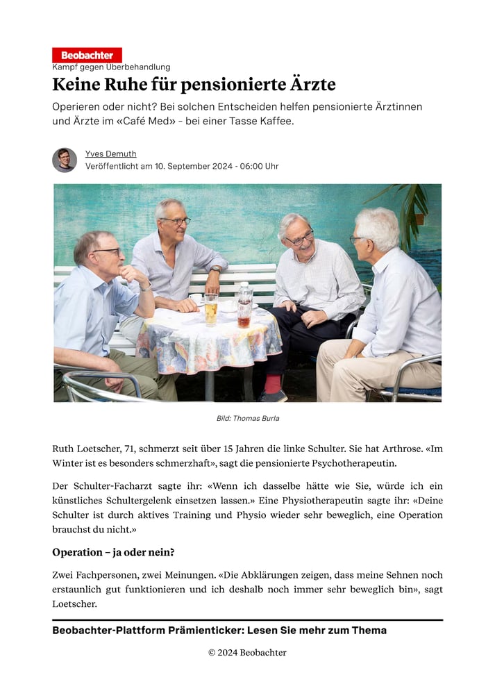 Operieren oder nicht? Bei solchen Entscheiden helfen pensionierte Ärztinnenund Ärzte im «Café Med» – bei einer Tasse Kaffee.