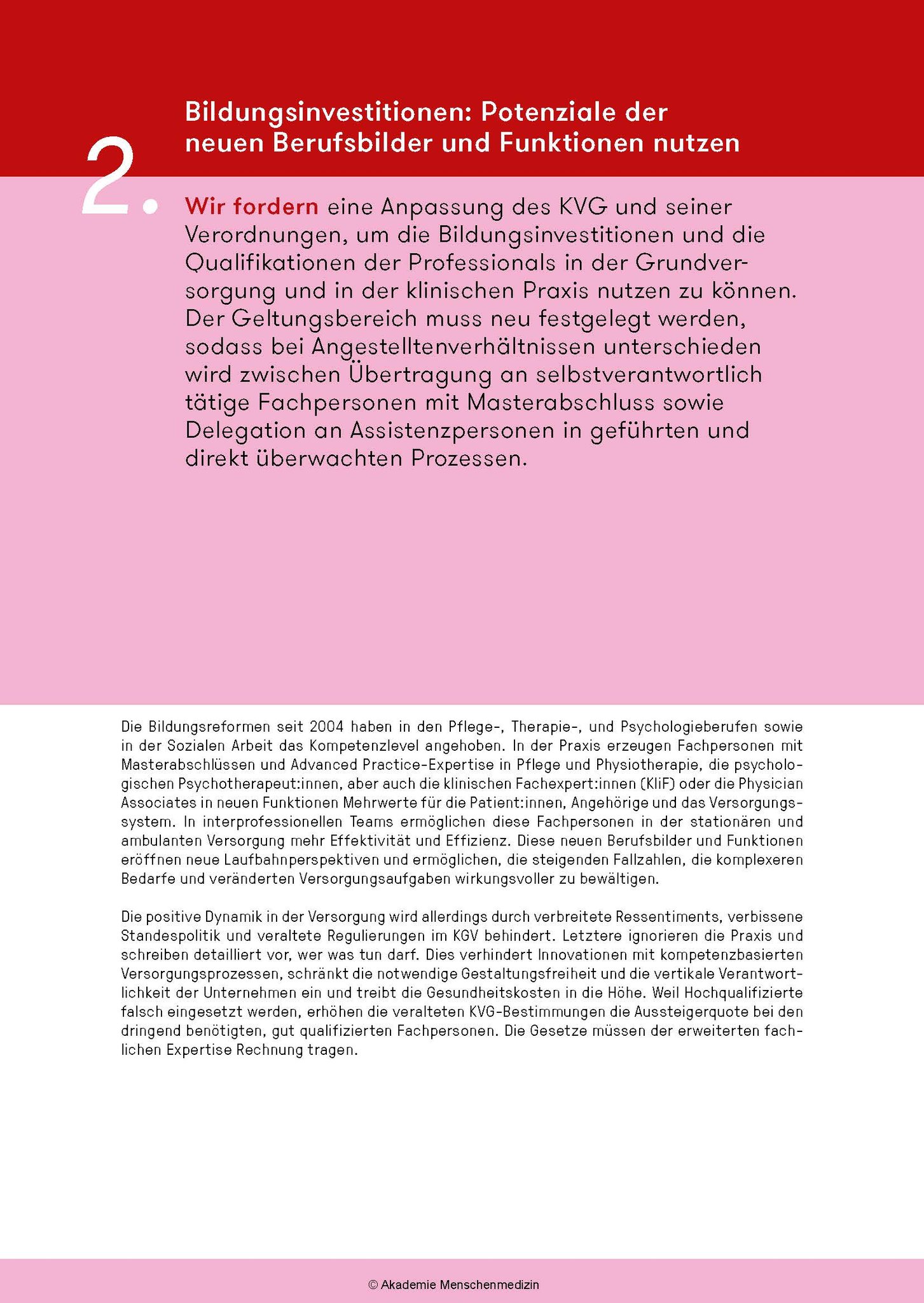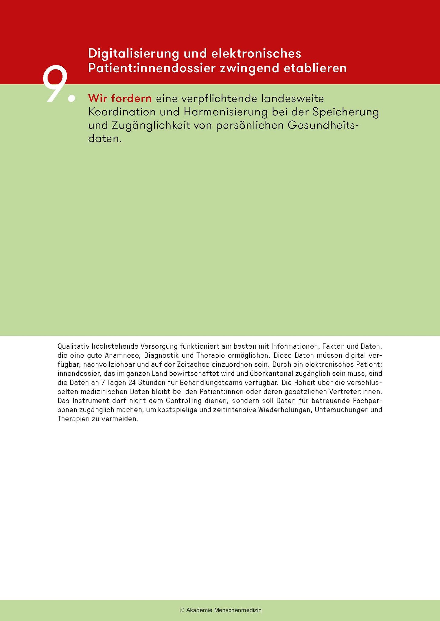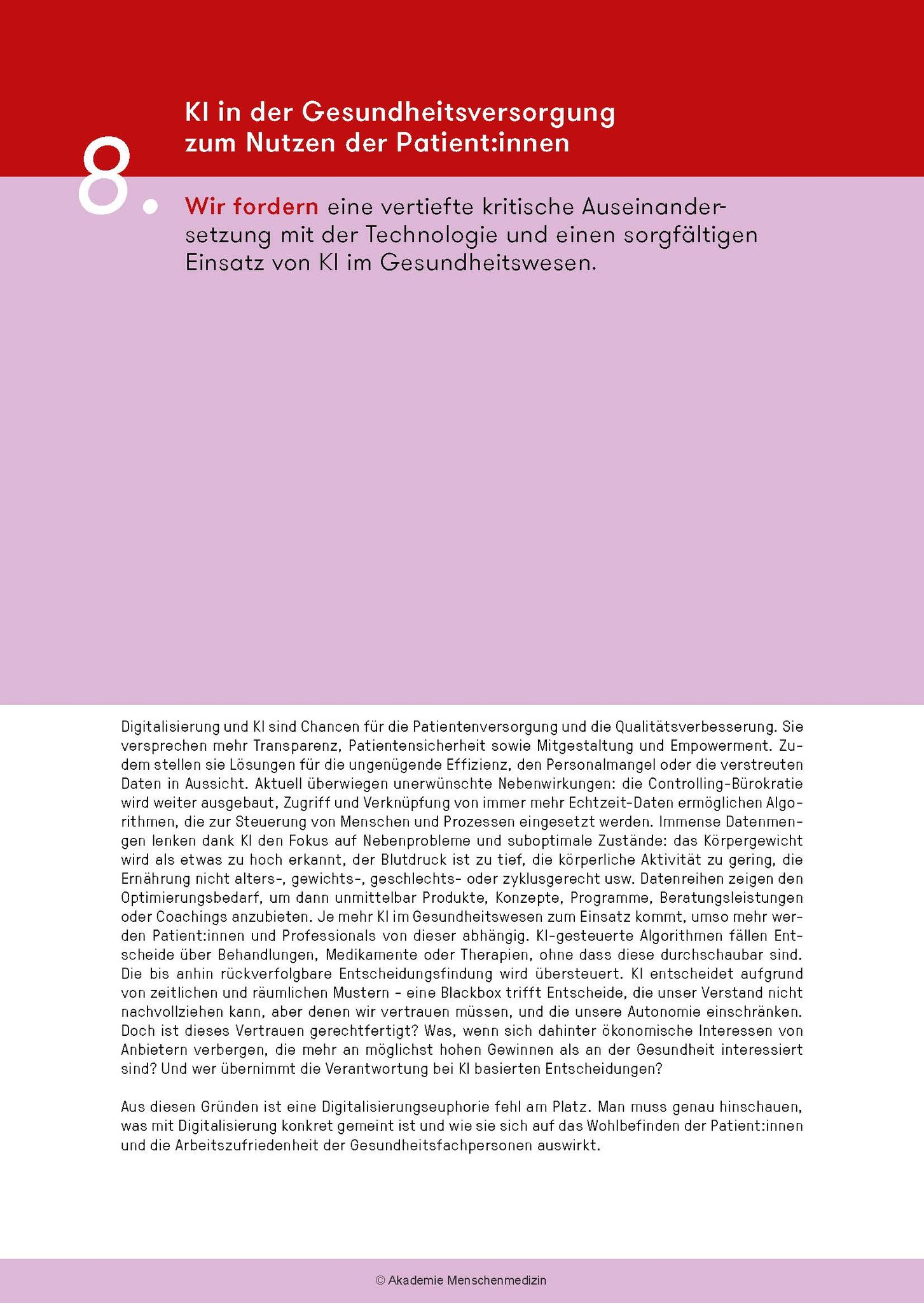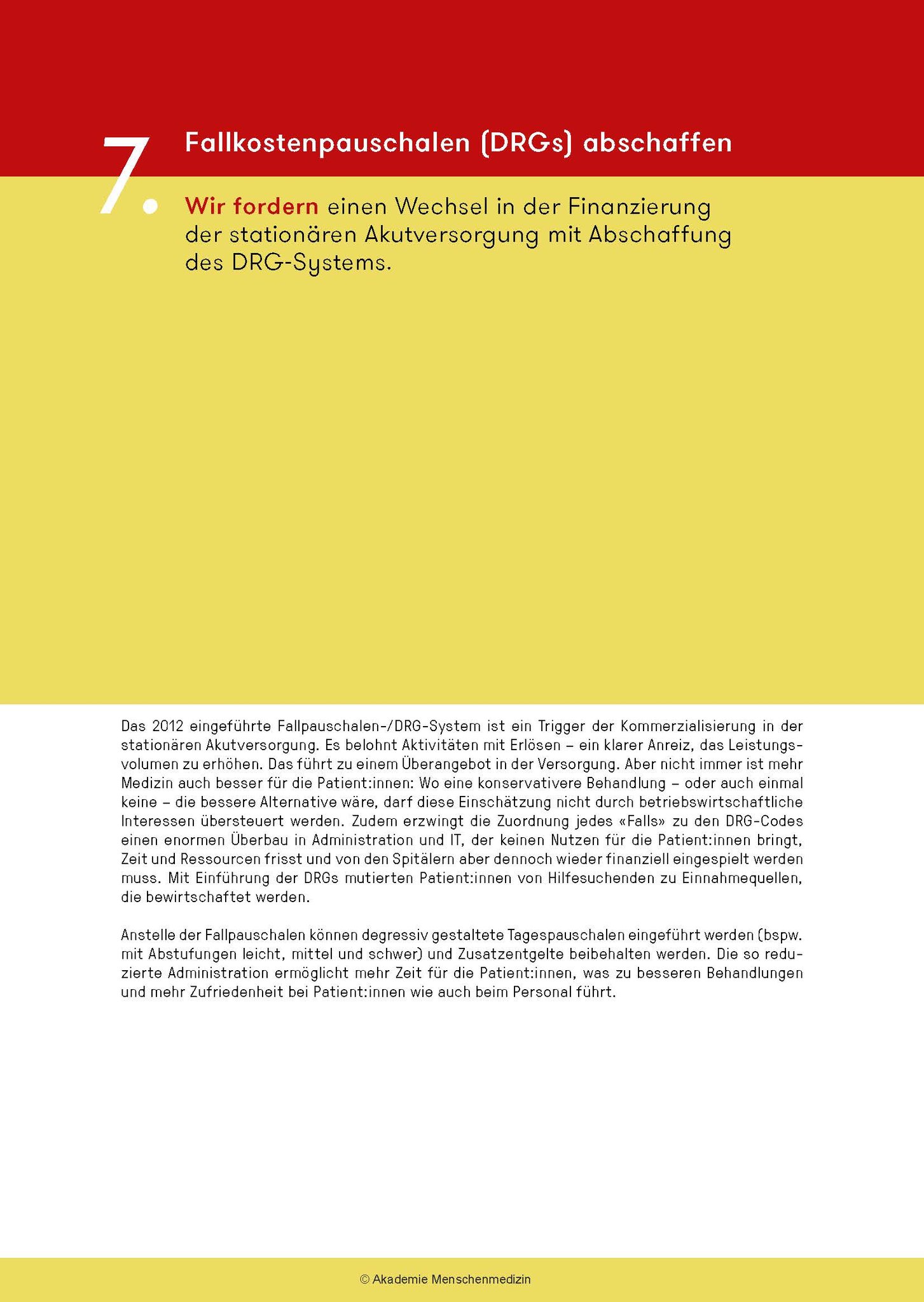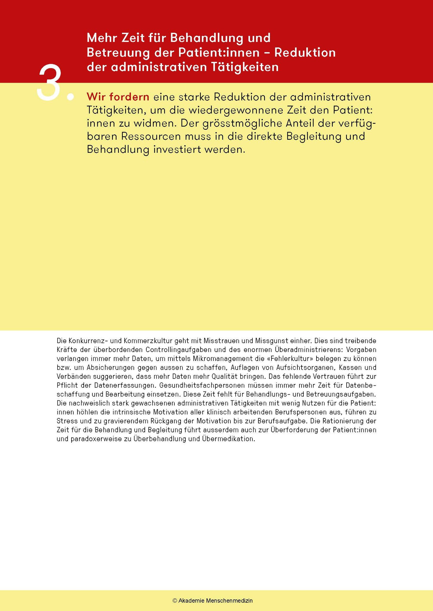 Das amm-Manifest fordert ein grundlegendes Umdenken: Bei der Aus- und Weiterbildungen, die bedarfsgerechter und kostengünstiger werden müssen, bei den Gesundheitsdaten und bei der Digitalisierung, bei den Krankenkassen u.a.m. Am Abschied von einer Sichtweise, die das Gesundheitswesen als Markt und medizinische Leistungen als Konsumgüter missversteht, führt kein Weg vorbei. Zudem muss neu ein Code of Conduct für alle im Gesundheitswesen Tätigen gelten.